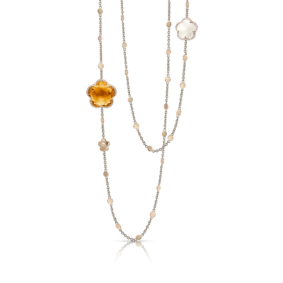 Sıcak turuncu ve sarı tonlarının nadir bulunan sitrin rengiyle harmanlandığı Bon Ton Divine. Zarif, sofistike ve rafine bir yaşam tarzına sahip bir kadını çağrıştıran bir koleksiyon. Bon Ton Divine çiçeği, tüm Pasquale Bruni mücevherlerinin özü olan ayrıntılara gösterilen özeni yansıtır. Kutsal OM sembolü ve "I am light, I give light" mantrası arka tarafa işlenmiştir.