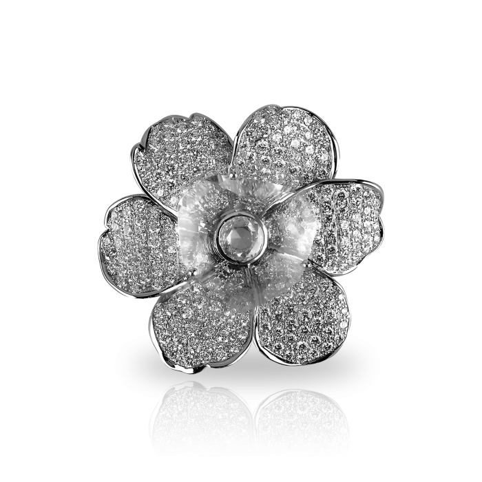 Gardenias koleksiyonundan "Gardenias Pave Maxi Broş"un zarafetini keşfedin, model 11574. Bu zarif broş 18K beyaz altından üretilmiştir ve pavé elmaslar ve kaya kristali ile sofistike ve göz alıcı bir dokunuş sunar. Yaklaşık 19,78 gram ağırlığında olan bu broş, lüks tasarımıyla her kıyafeti güzelleştirmek için mükemmel bir aksesuardır.